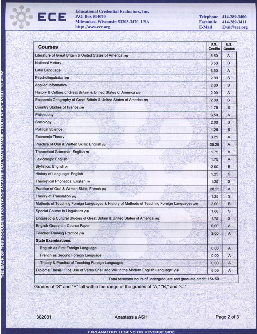 My University Diploma evaluated by Educational Credential Evaluators (ECE) - p 2